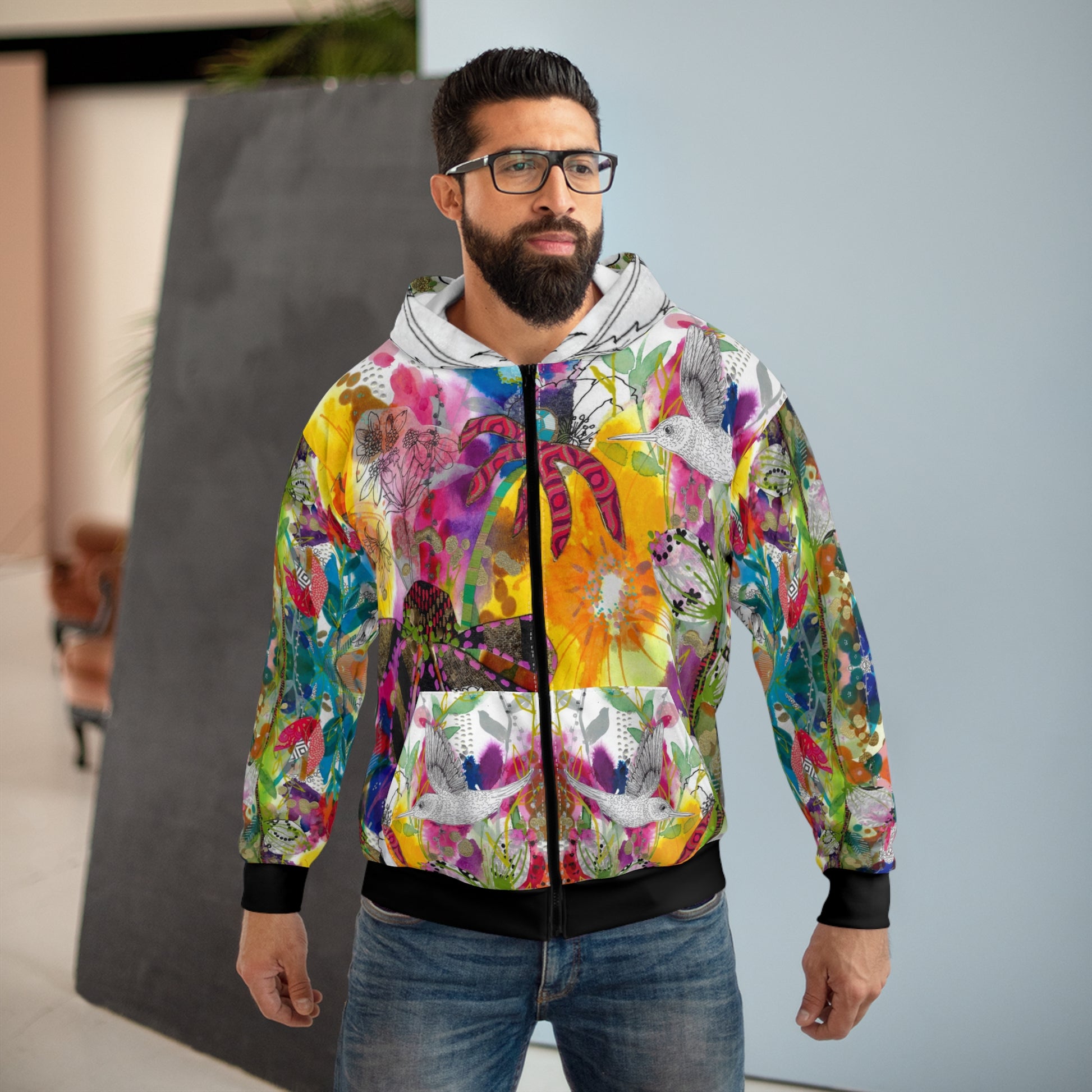 Follow My Lead - Floral and Hummingbird Unisex Zip Hoodie