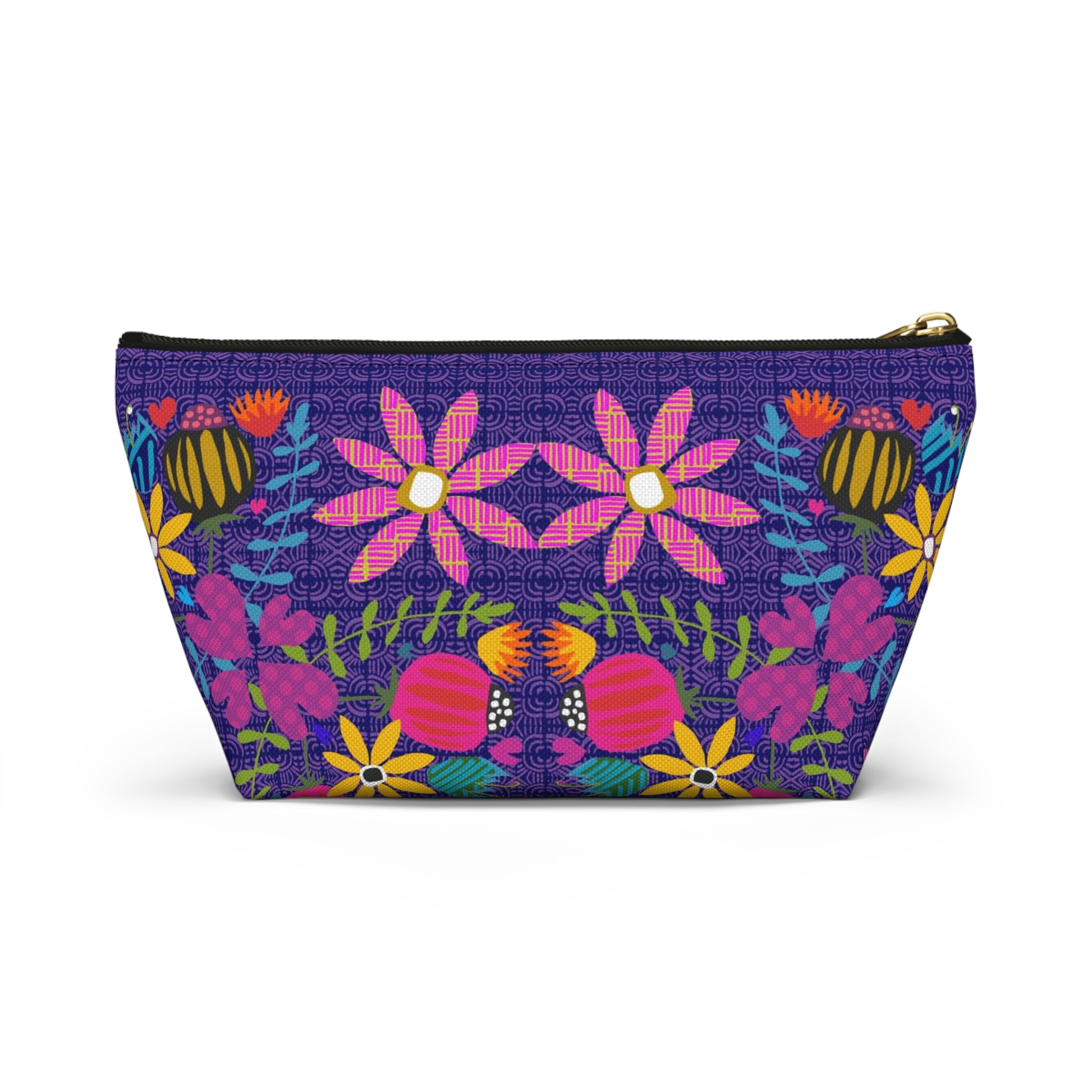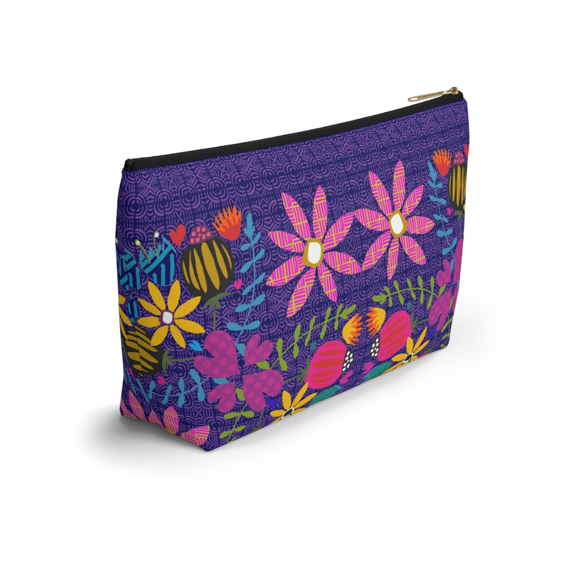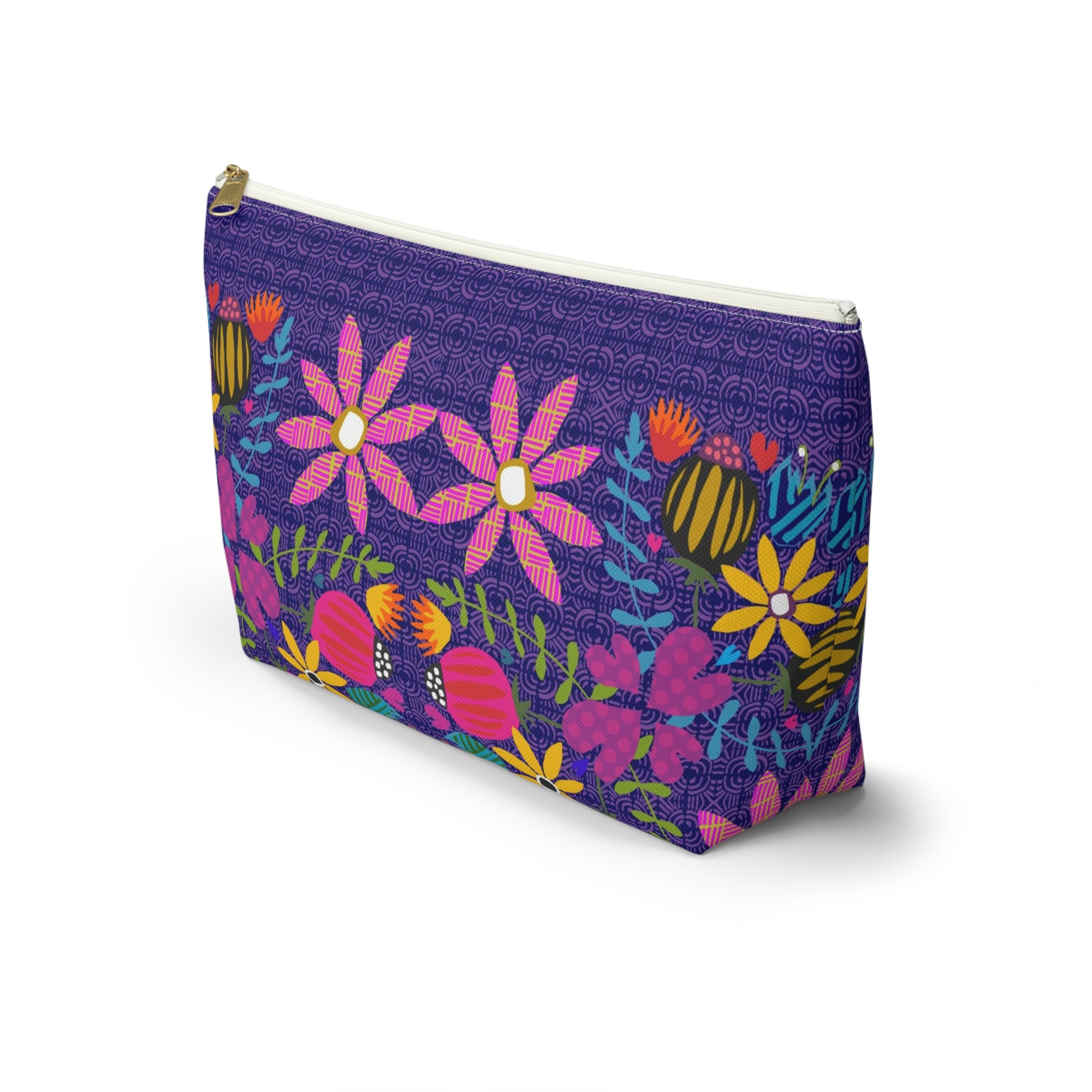 Funky Folk Flowers ~ Purple ~ Accessory Pouch w T-bottom