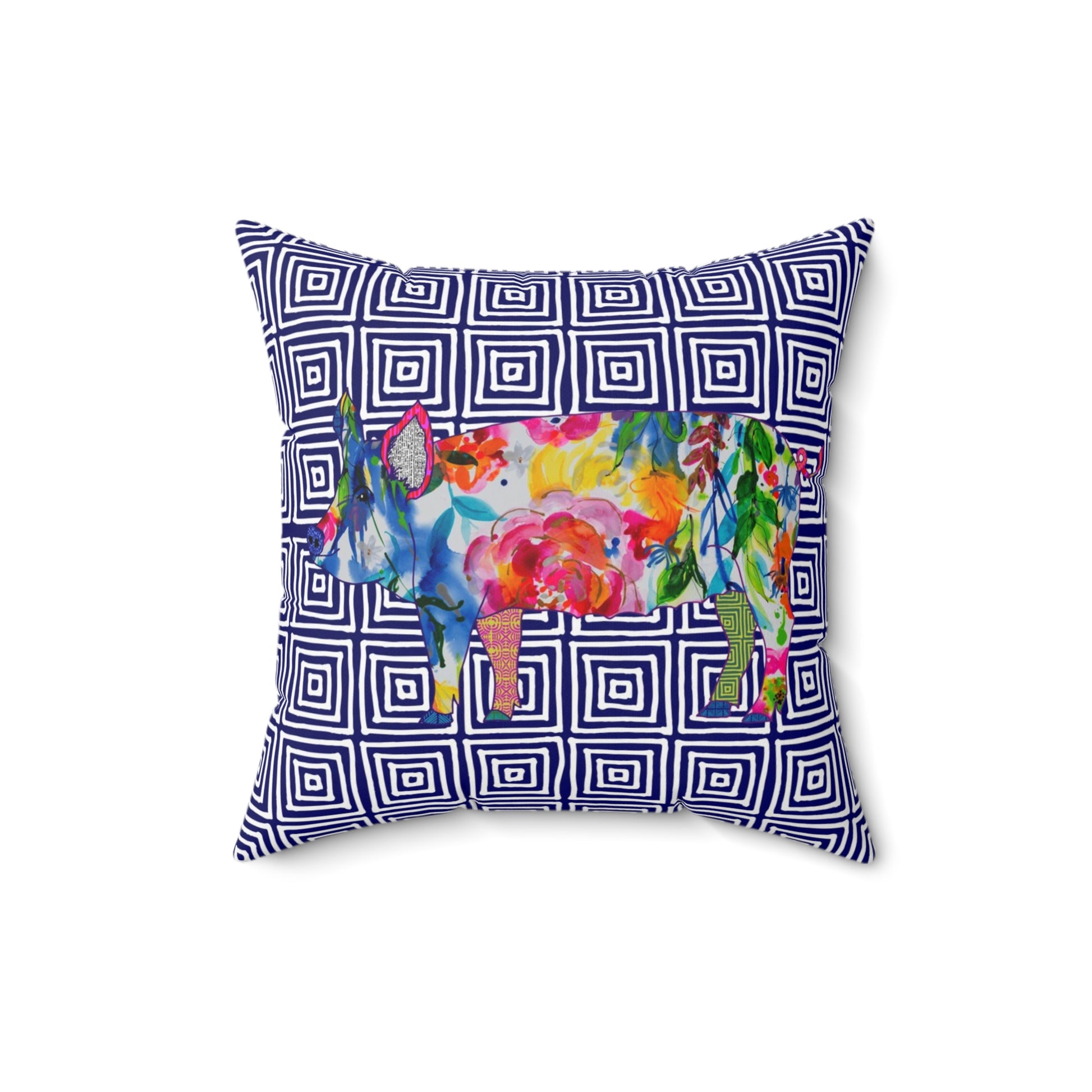 Geometric Pig ~ Jubilant ~ Square Pillow