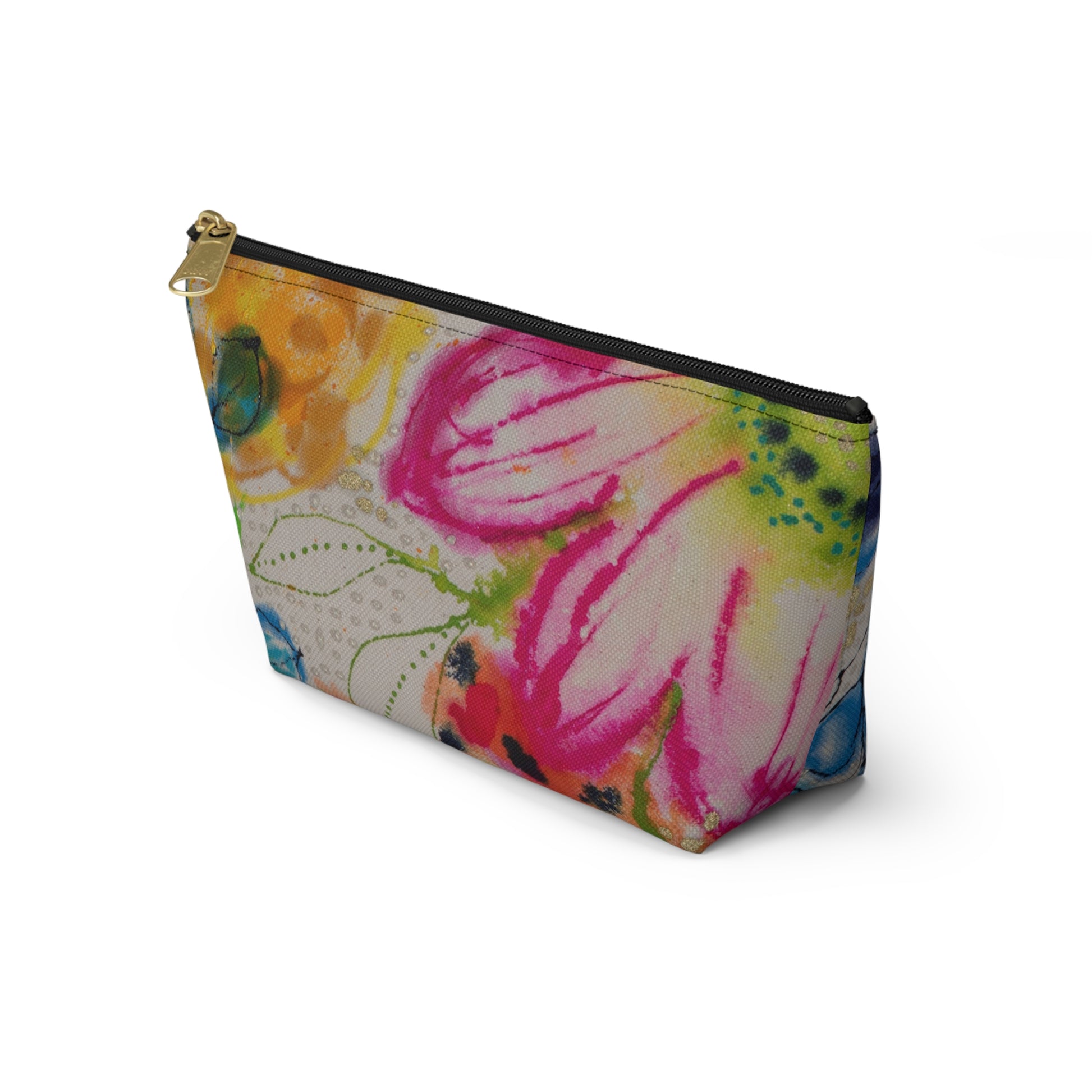 Our t-bottom pouches vary from small to large and can be used for pretty much anything. They make excellent pencil cases and cosmetic travel bags. They are constructed from a durable material with a zipper closure.