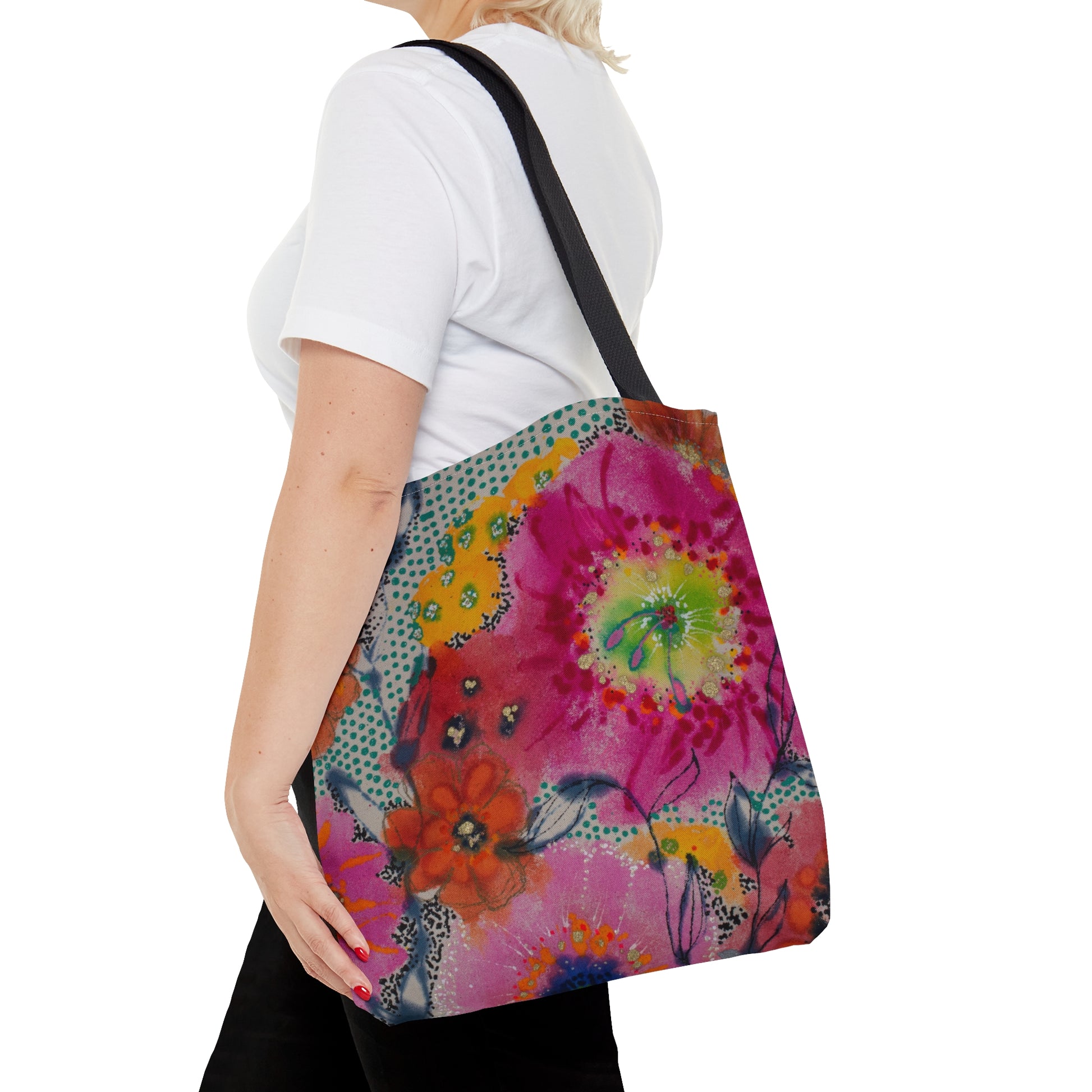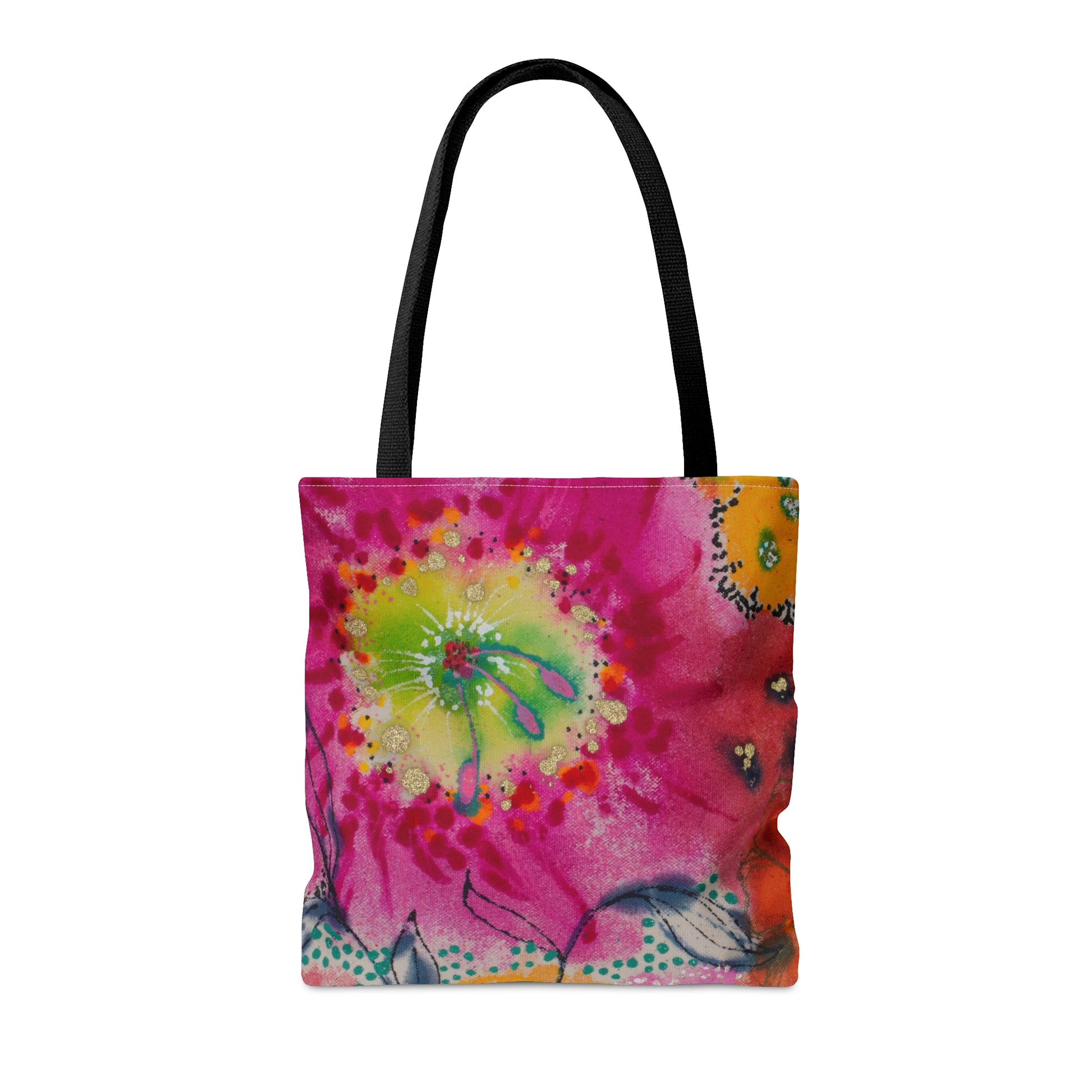 This tote is designed with the No Regrets painting by Jennifer Visscher. The loose and bold style paired with a touch of hand painted pattern is apparent in much of Jenna's work. In the No Regrets series of products, you can feel the freedom and joy she was experiencing when she was in the flow of her creativity - putting brush and ink to paper.
