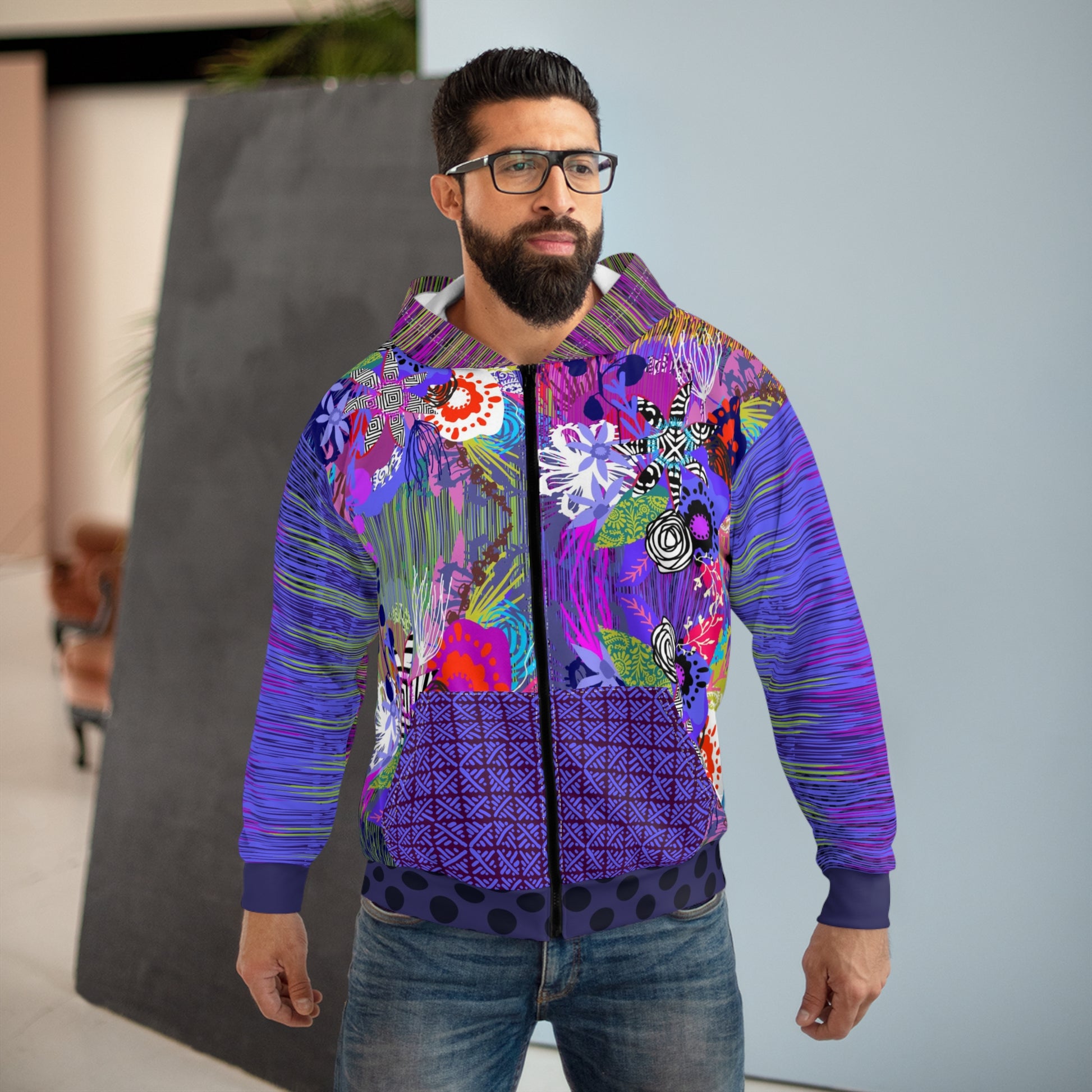 The Vida with Stripes Zip Hoodie is a stylish and cozy addition to your wardrobe. With spacious pockets to keep your hands warm, full decoration with bright colors, and a durable polyester fabric, this hoodie is perfect for anyone looking for comfort and style. It is great for casual wear or lounging at home, and makes a great gift for birthdays, holidays, or special occasions.