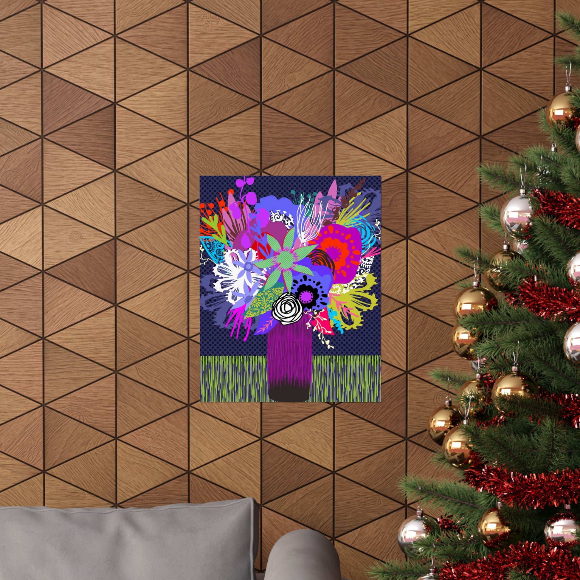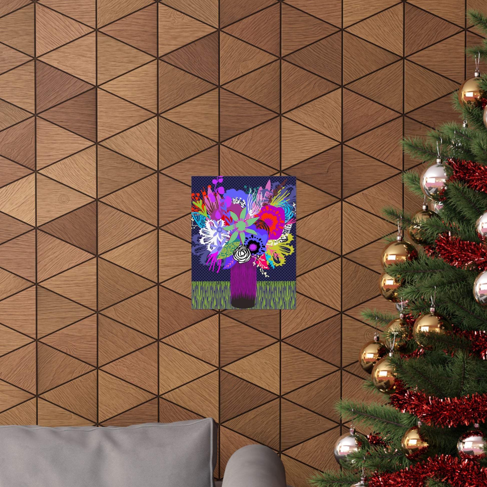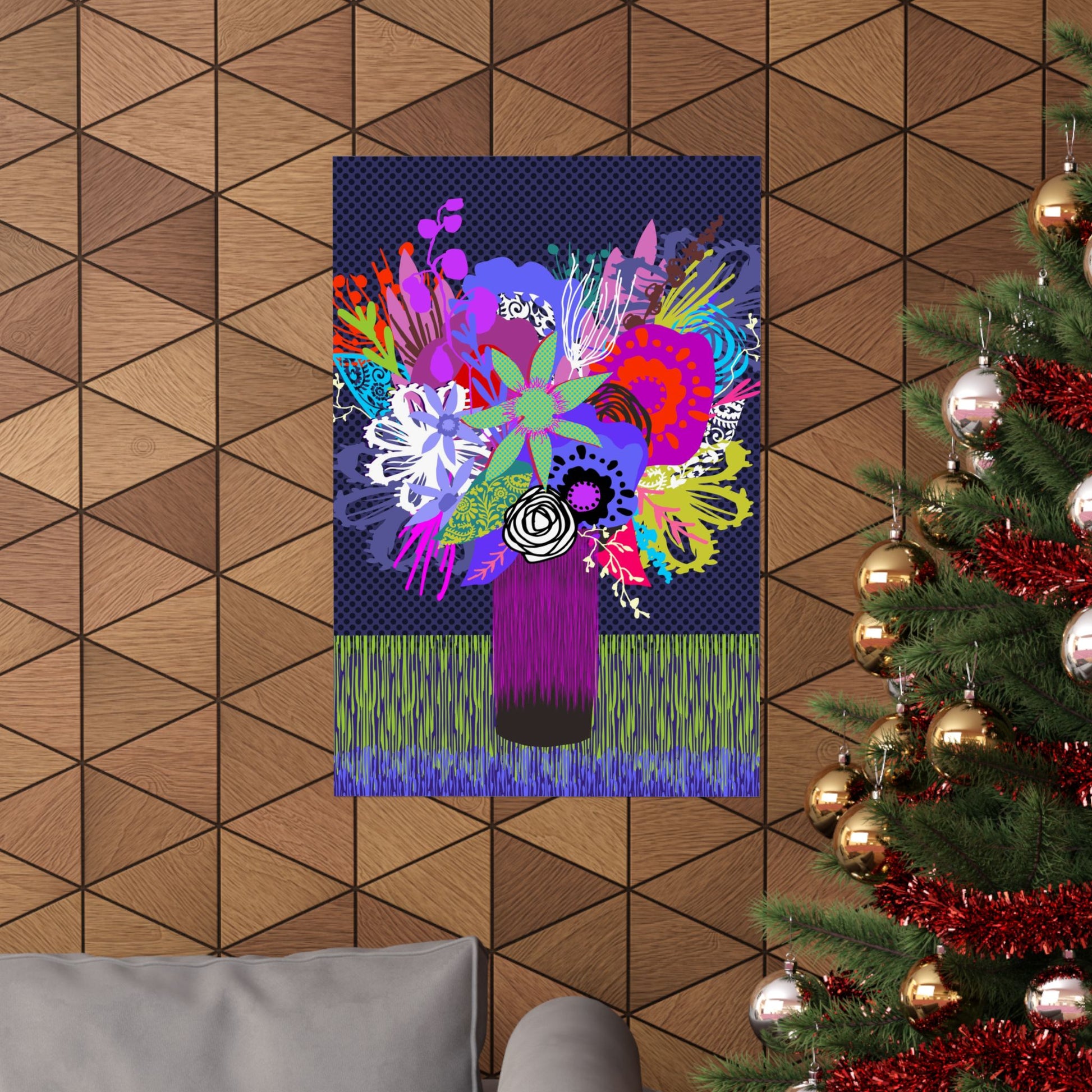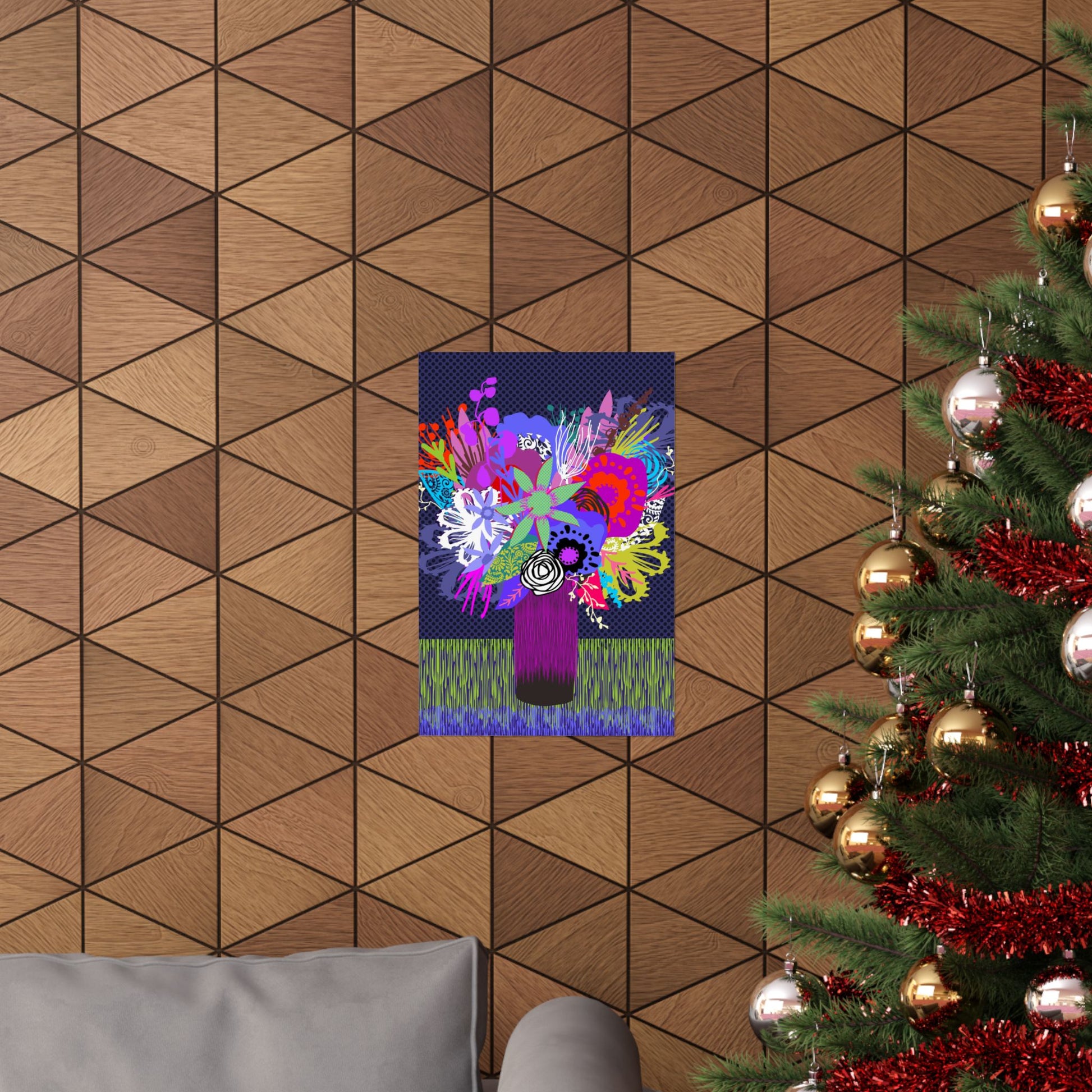 Wild Abandon Vase Of Flowers ~ Navy ~ Premium Matte Art Poster